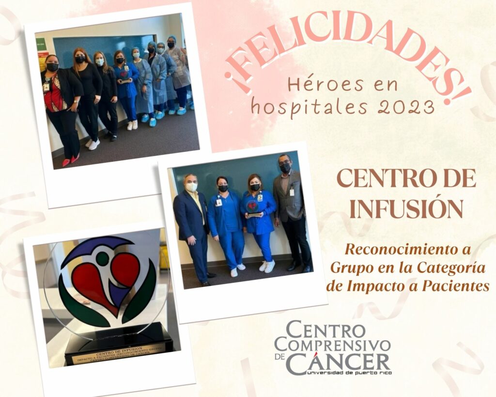 El Hospital del Centro Comprensivo de Cáncer UPR felicita al equipo de trabajo del Centro de Infusión por el reconocimiento de grupo en la categoría de impacto a pacientes orotgado por la Asociación de Hospitales de Puerto Rico en la actividad denominada «Héroes de Hospitales» como parte de la Semana de Hospitales.